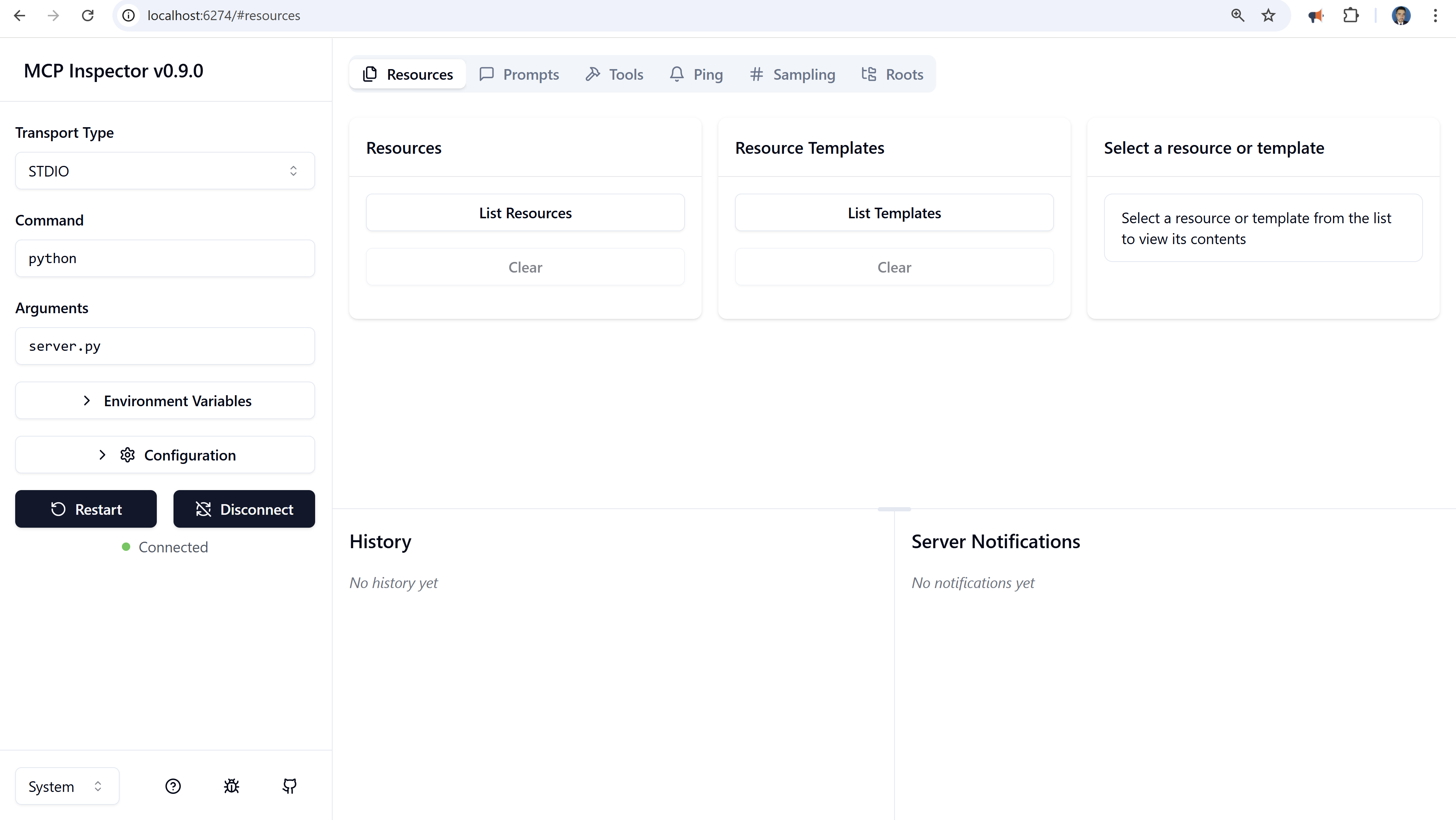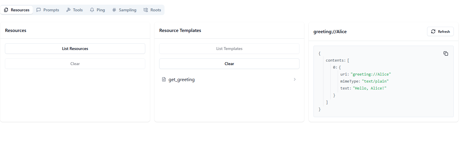 greeting://Alice)Once your server is up and running in the Inspector (using the setup from above), you can invoke any registered resource by its URI: