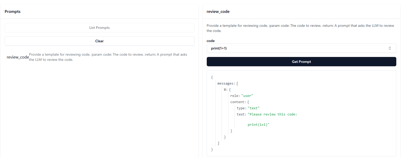 review_code Prompt via the MCP Inspectorreview_code listed:review_code