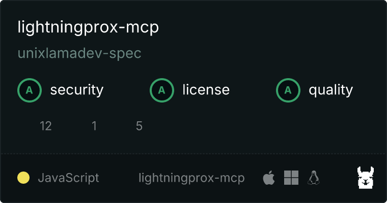 ~/Library/Application Support/Claude/claude_desktop_config.json%APPDATA%\Claude\claude_desktop_config.json~/.config/claude/claude_desktop_config.jsonclaude mcp add lightningprox -- npx lightningprox-mcp
